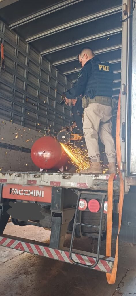 Após novas contradições no relato do motorista, foi realizada uma inspeção mais detalhada no equipamento. Ao abrir o compressor, foi identificado um forte odor de substância análoga a maconha, e, ao proceder com a abertura total do cilindro, foram encontrados 76 tabletes de supermaconha (skunk), pesando aproximadamente 80 quilos.
